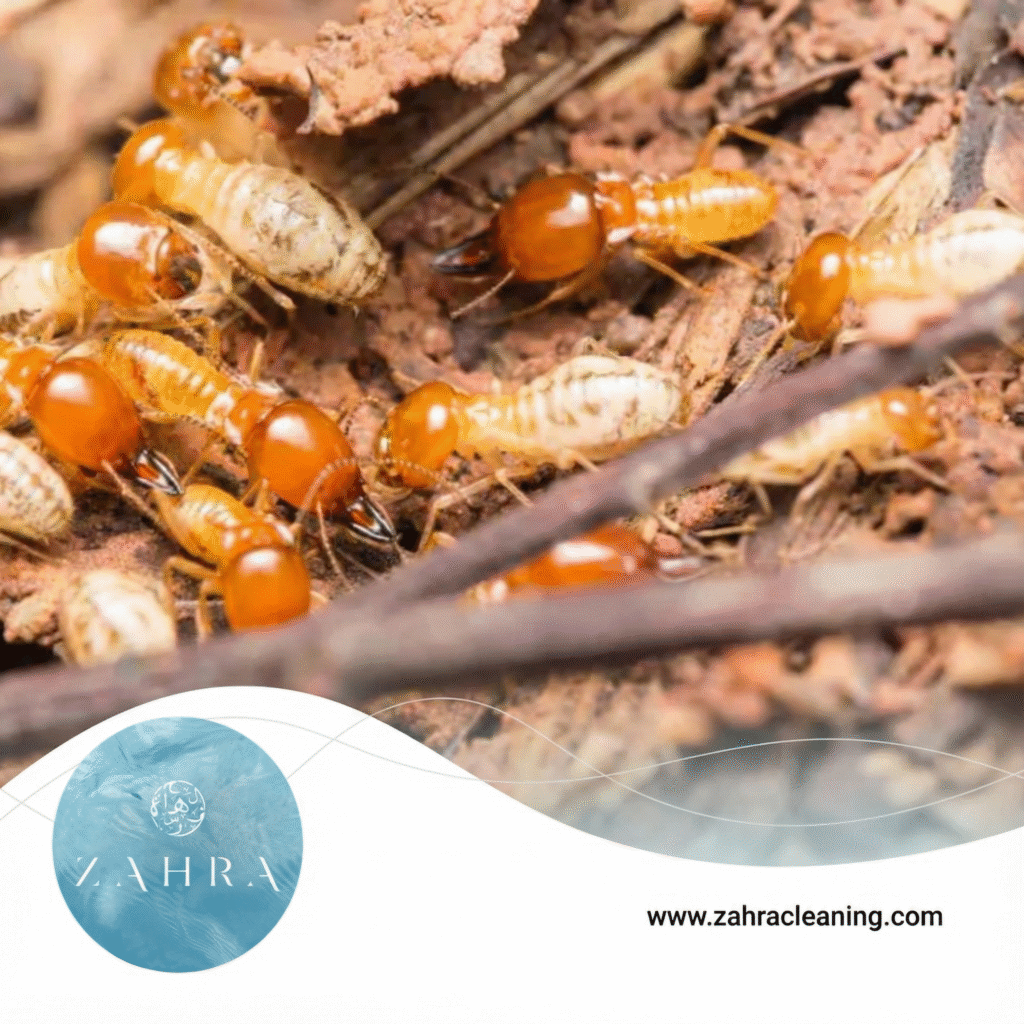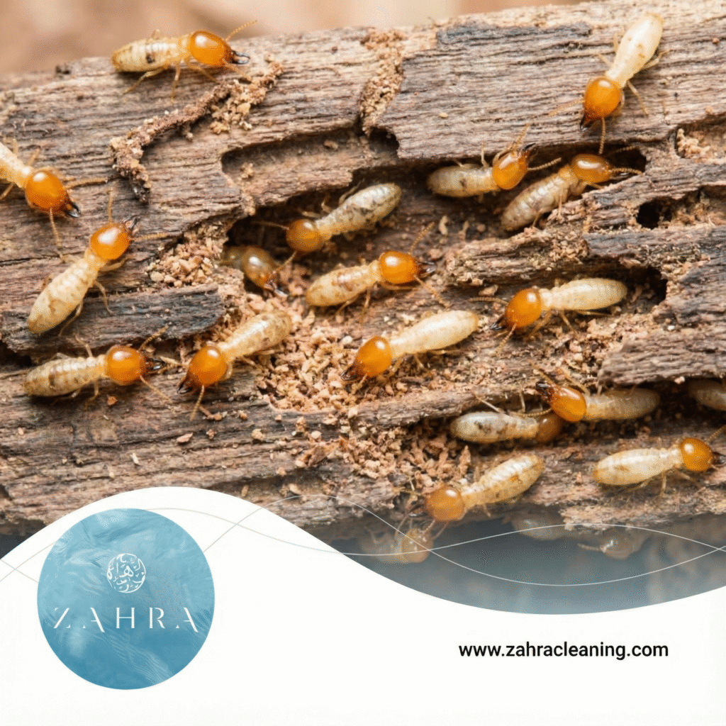 تُعتبر الأرضة من أخطر الحشرات التي تُسبب دمارًا كبيرًا في المباني والممتلكات، ولذلك فإن الاعتماد على شركة مكافحة الارضة في الورقاء أصبح ضرورة لكل من يريد حماية ممتلكاته. شركة زهرة كلين تقدم خدمة احترافية متكاملة في هذا المجال، حيث أنها معروفة بكونها شركة مكافحة الرمة في الورقاء ذات خبرة طويلة في مكافحة الأرضة أيضًا. كما أنها تعتمد على أجهزة متطورة للكشف المبكر عن أماكن الإصابة. كذلك فإنها تقدم تقارير تفصيلية للعميل عن حالة المبنى قبل وبعد الخدمة.
